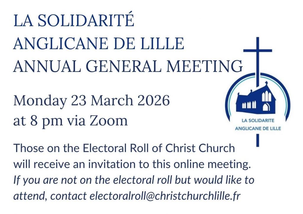 All members of Christ Church Lille who are on the electoral roll can vote at the meeting, but everyone is welcome to join us and to see how we try to look beyond our church and help others.